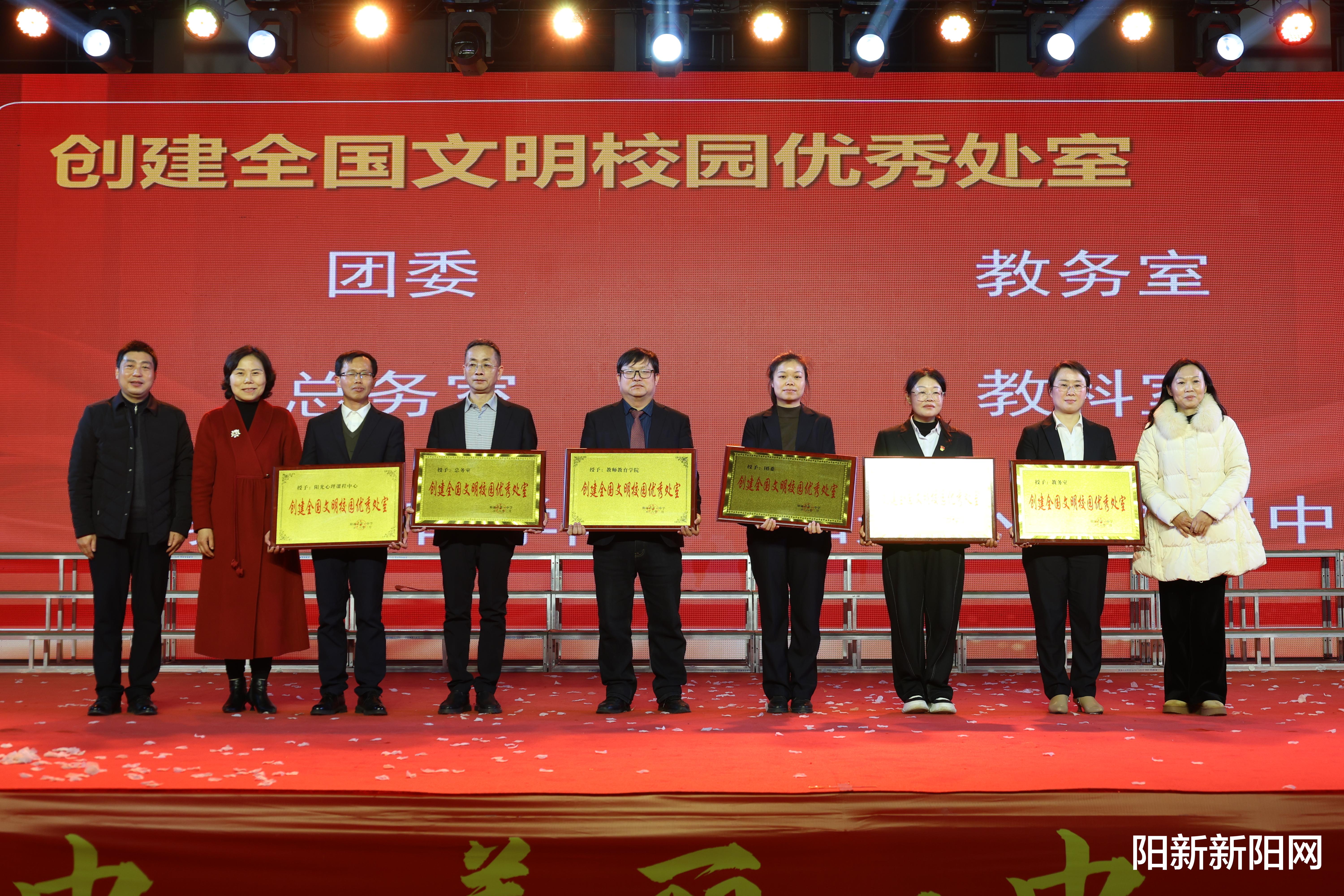 晚会还颁发了“创建全国文明校园先进个人”“突出贡献个人”“优秀处室”及“突出贡献处室”奖项,对在文明校园创建工作中表现卓越的师生与集体予以公开表扬和热烈祝贺。