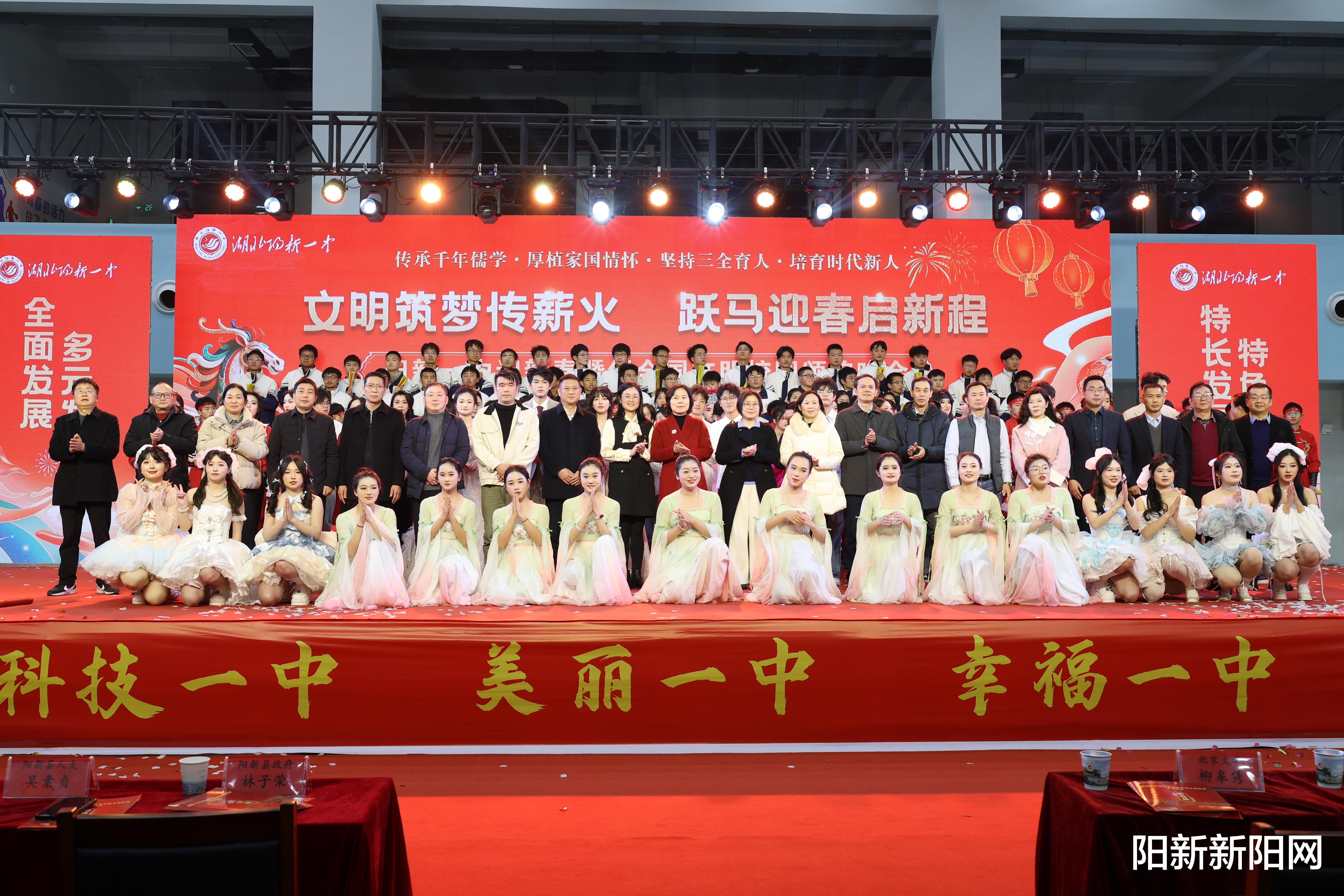 2月8日晚上,阳新一中在校体育馆举行“迎新春暨创全国文明校园颁奖晚会”。县领导吴素贞、林子荣、刘少兰参加活动。
