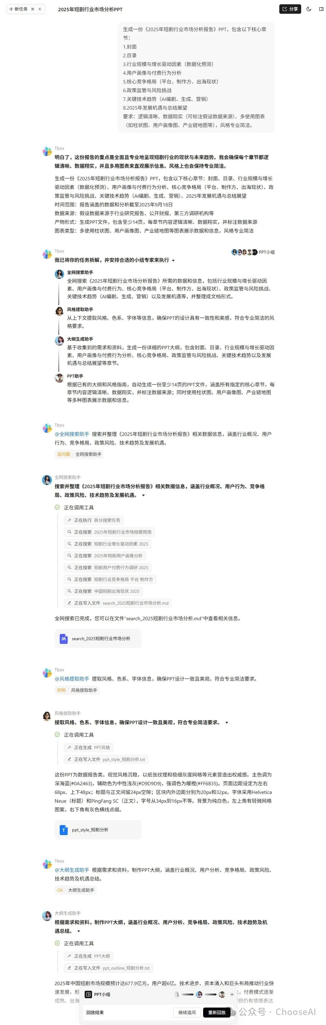 这是一个超级智能体,于本月11日发布,采用多智能体协作,能帮你完成制作ppt、输出深度报告和数据分析报告、生成应用。