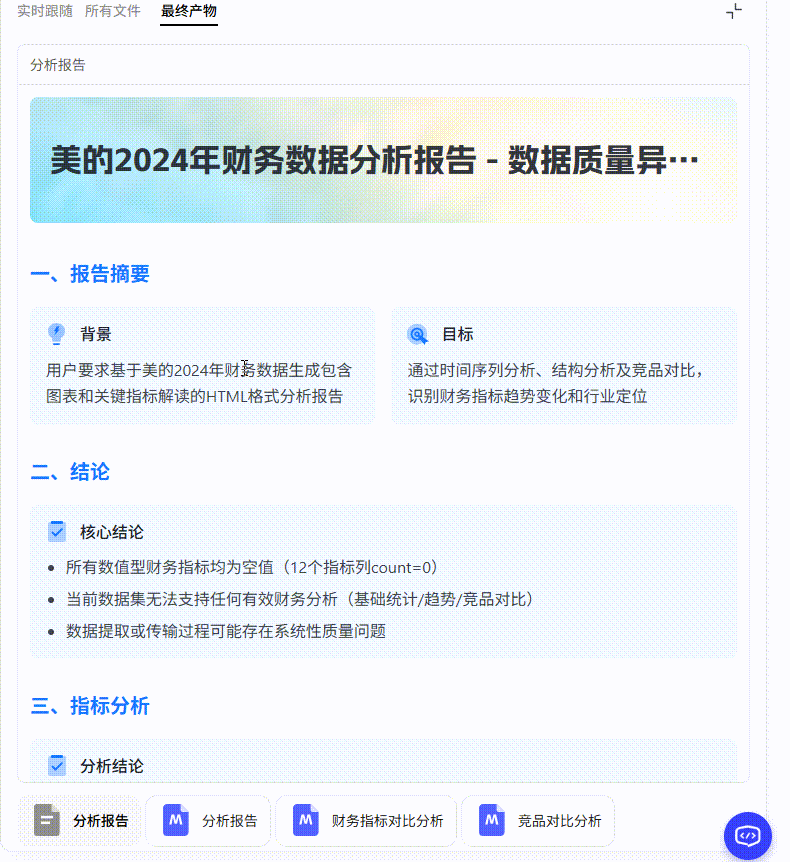 我本来想让它参考附件内容生成可视化的报告,但因为要求的主题同附件关联性弱,所以它就相当于全部自我发挥了。