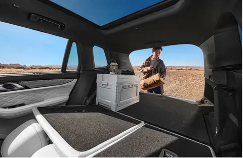空间方面2026款领克09前排靠背放倒与二排组成“双人沙发床”,松弛感拉满,无论工作日午休,还是户外躺卧刷剧都格外惬意。二排座椅立起时,后备箱容积达691L,轻松容纳全家出行装备;放倒后,后备箱可扩容至1522L,铺上床垫就是同级最大的“两米豪华大床房”,搭配全景天窗,自驾出游于山野间尽享自由与浪漫。