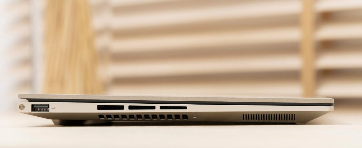 ▲限于机身厚度,虽然接口没有传统笔记本那么丰富,但是在接口设计上却很人性化,左侧带有一个USB接口可以接驳U盘等存储设备,右侧提供有常用的HDMI接口,方便日常开会接投影机等演示设备,并有两个全能雷电4接口和一个二合一音频接口。