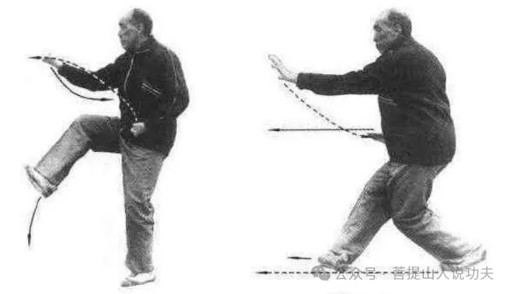 “行如槐虫”,这说法看着简单,内含重要技术。槐虫爬,腰一拱一拱的。形意(尤其劈拳步子)就借这个意思。劈拳起钻,左脚尽量撇出去,两膝盖得往外撑开(这叫“圆裆”),为的是开胯、坐胯、松胯。胯活了,底盘才稳,功夫才上得去。