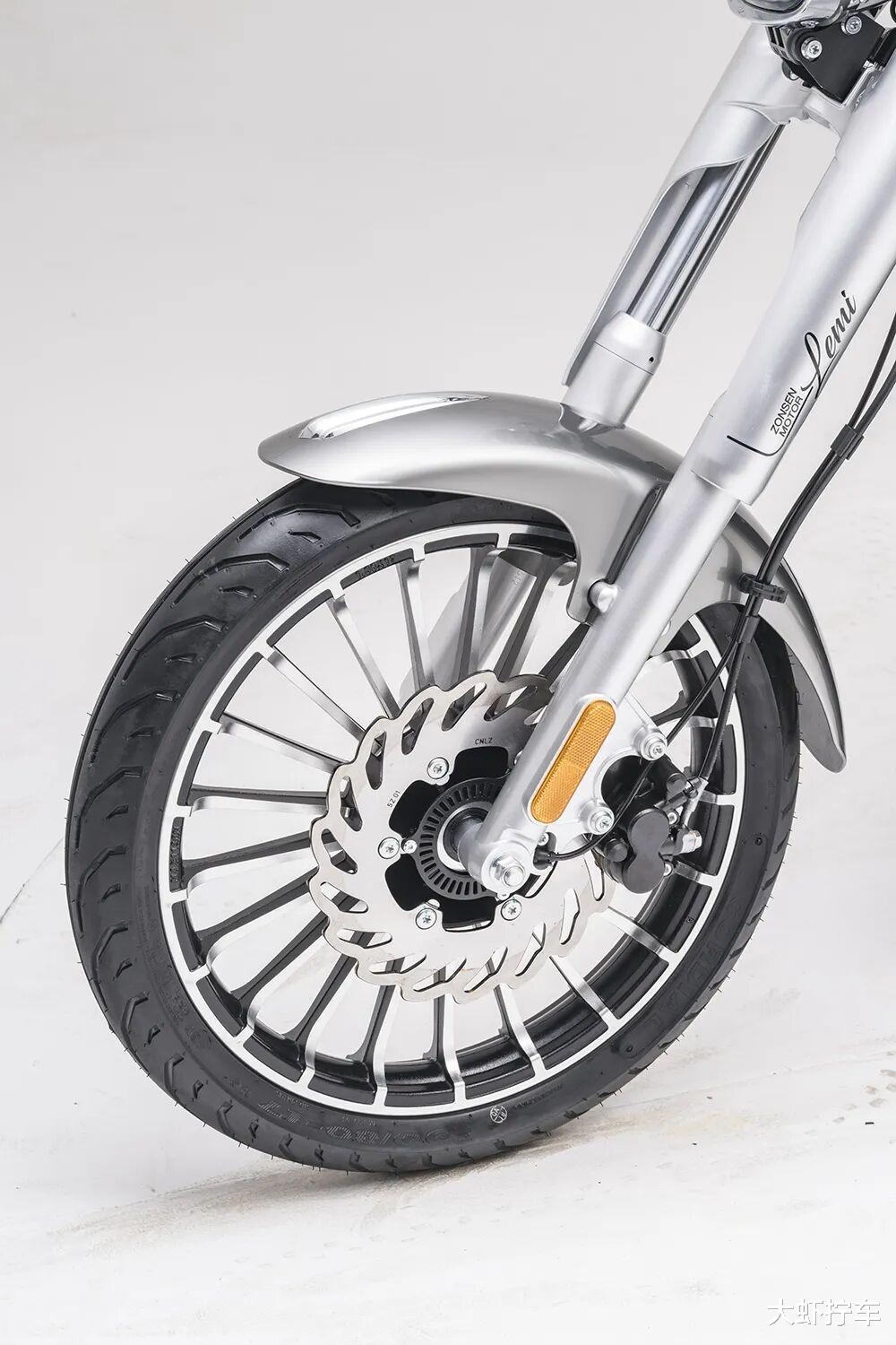 悬挂部分,乐米采用了前129mm活动行程的正置液压减震和内置气囊的后减震,更长的活动行程意味着对抗路面颠簸冲击的能力更强更舒适。轮组方面乐米装备了一套前90/80-17、后140/70-14的诚远轮胎和铝合金压铸轮毂,前浮动式双活塞卡钳、后单活塞卡钳以及双通道ABS足以保障这台轻巧小车的安全性。