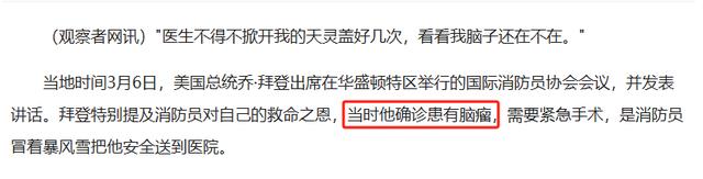 幸运的是,他这次发现及时,病情虽然严重,但不至于棘手,手术操刀的还是脑瘤专家,历经9个小时的手术,拜登算有惊无险,安全从手术台上下来。