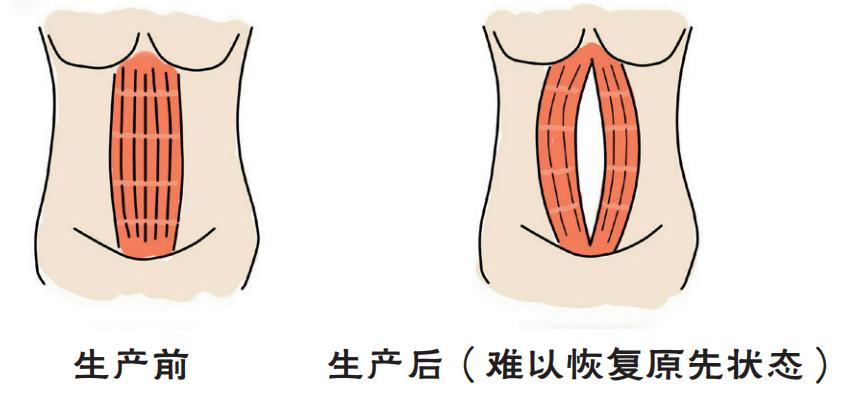 生产后,腹直肌群弱化,腰部脊柱肌肉群负荷增加。