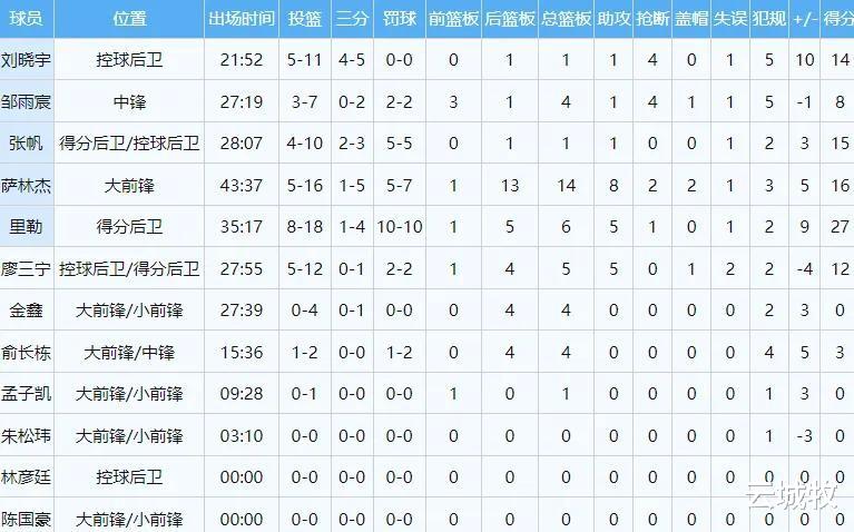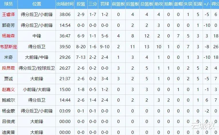 反观北控队,全队五人得分上双,其中廖三宁贡献12分5篮板5助攻,球队整体表现更加均衡。