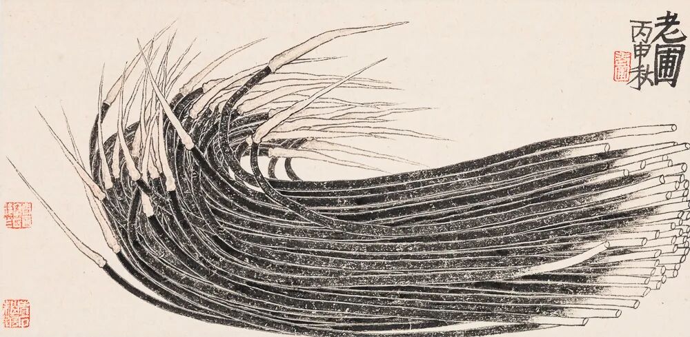 欣赏老圃先生的画作,犹如参禅。其画面往往极简,构图空灵,大片留白给人以无尽的想象空间。物象本身被高度提炼,以最本质的形态呈现。这种“少”,并非空洞,而是为了凸显“多”——那蕴含于物象之中的神采、气韵与生命力。