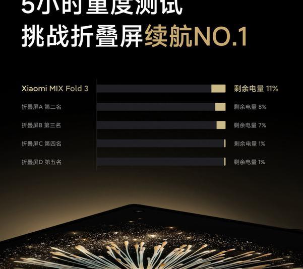 数据显示,小米MIXFold3的续航率达到了11%,相较于其他同类型产品有明显的优势。这意味着用户可以更长时间地使用手机而无需频繁充电,大大提升了使用体验。