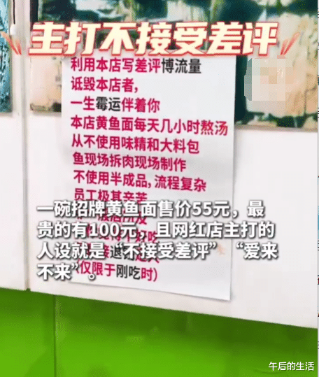 事件曝光后,面馆仍在营业,但门口排队人群锐减。大众点评最新评论区,高赞留言写着:"55元买的是过期食材,不是情怀"。网友"食安卫士"发起话题#网红店为何屡屡翻车#,阅读量已破千万。有消费者晒出三年前在该店拍摄的视频:当时的后厨同样存在卫生问题,只是未被曝光。