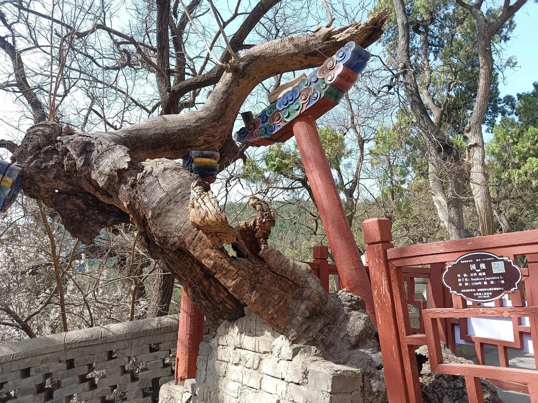 卦柏奇观:"龙爪柏"悬根露爪如巨龙探云,树龄超1200年,其根系恰好落在"坎卦"方位(水脉汇聚处);"牛头柏"双枝交缠似牛头,枝桠角度暗合"艮卦"(山止)的稳定之势;