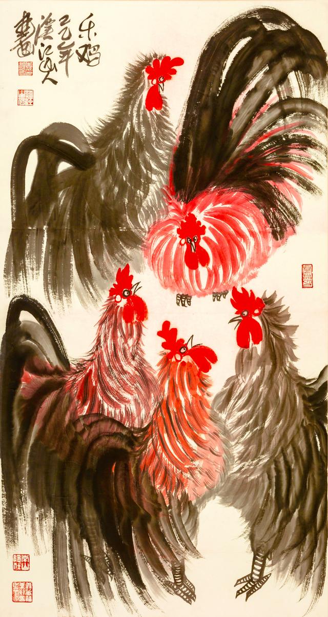 溪江画派创始人、指墨画领军人朱祖国先生国画鸡