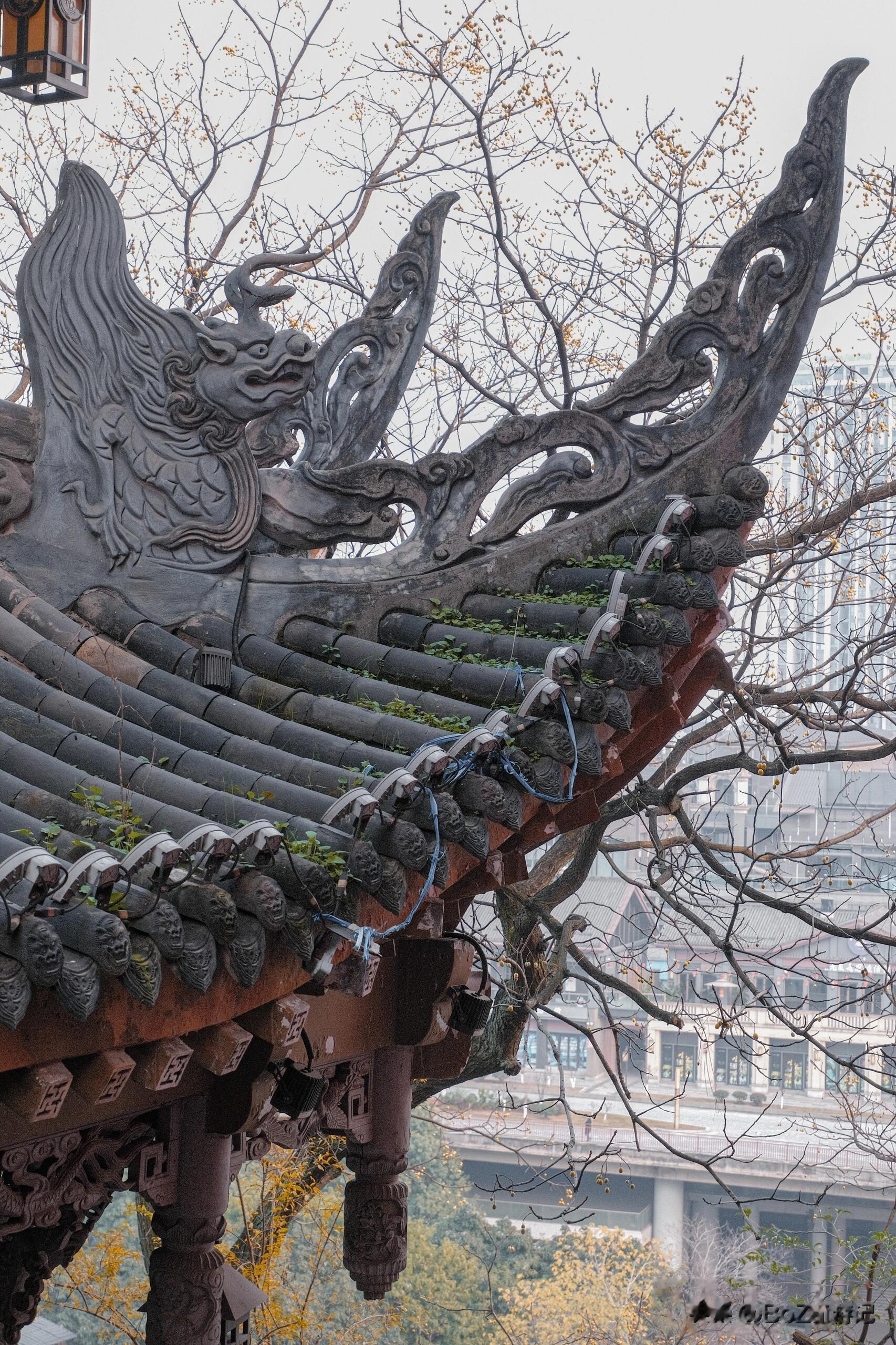 殿内供奉着几尊佛像,虽非明代原物,却依旧庄严肃穆。佛像端坐于莲台之上,神情慈悲安详,仿佛能洞察世人的心事。两侧的楹联字迹工整,寓意深远,透着浓厚的文化气息。殿内的陈设简单朴素,没有过多的华丽装饰,却更能凸显出古刹的宁静与庄严。站在殿内,仰望高大的梁架与精美的斗拱,心中满是敬畏。这座大殿历经数百年风雨,见证了磁器口从一个默默无闻的小码头发展成如今的网红古镇,也见证了重庆这座城市的兴衰变迁,它就像一位沉默的历史见证者,静静地伫立在那里,诉说着过往的故事。