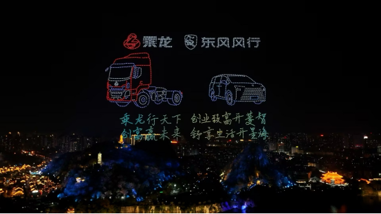 3500架无人机腾空而起,以天为幕,作光为笔。柳宗元、风雨桥、文庙……柳州的文化地标在夜空中被依次点亮。最终,画面定格在1954——东风柳汽诞生的年份,以及“乘龙”、“风行”的品牌标识。
