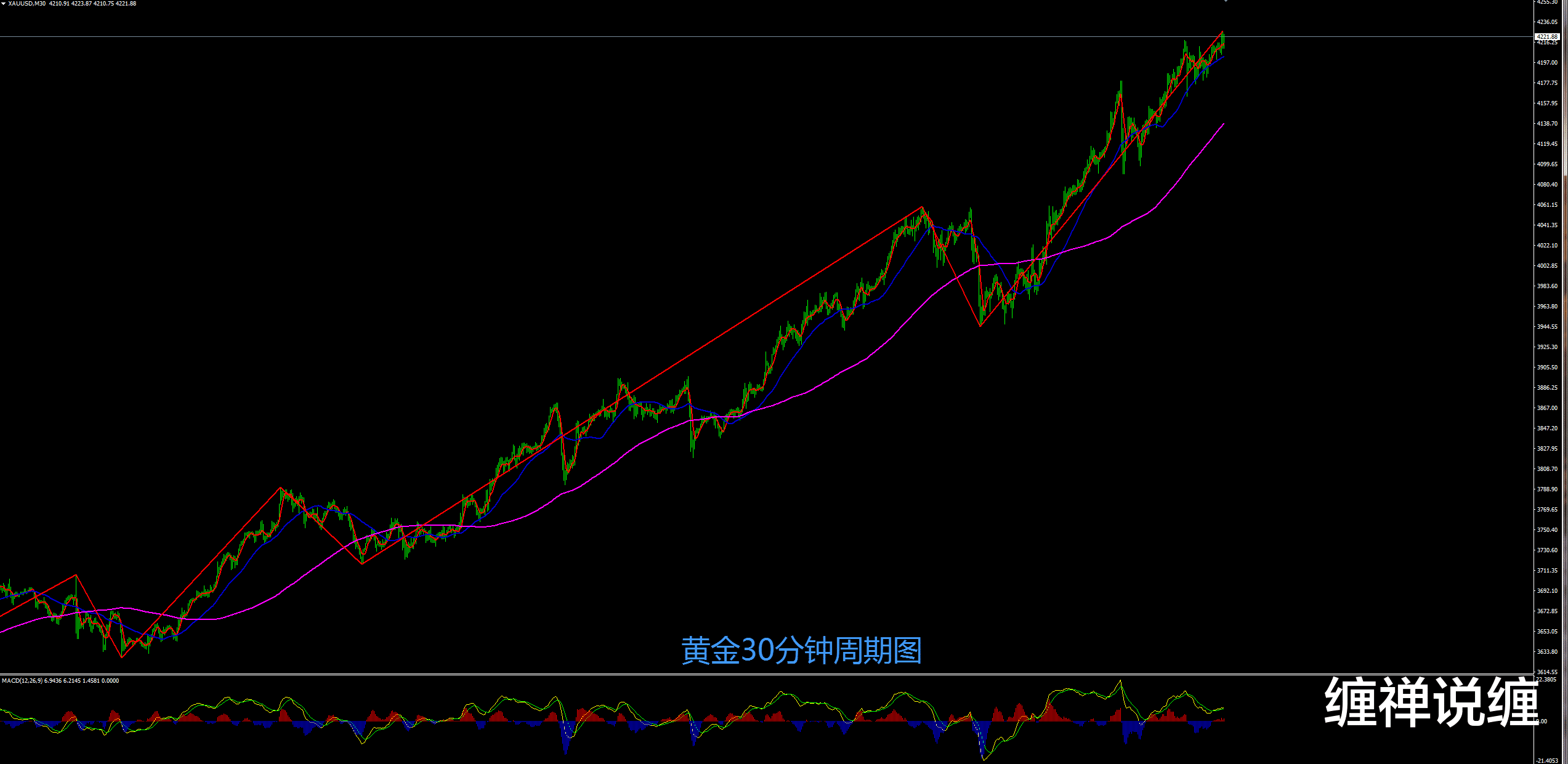 黄金30分钟还是继续上涨延续,黄金30分钟短线只要不跌破4175,那么黄金30分钟就还是在上涨过程中有望继续延续上涨,黄金早盘回撤4175上还是可以继续逢低顺势多。黄金现在多头量能强势,黄金30分钟大概率还是有望继续延续上涨。黄金再创新高,短线回撤顺势继续多!