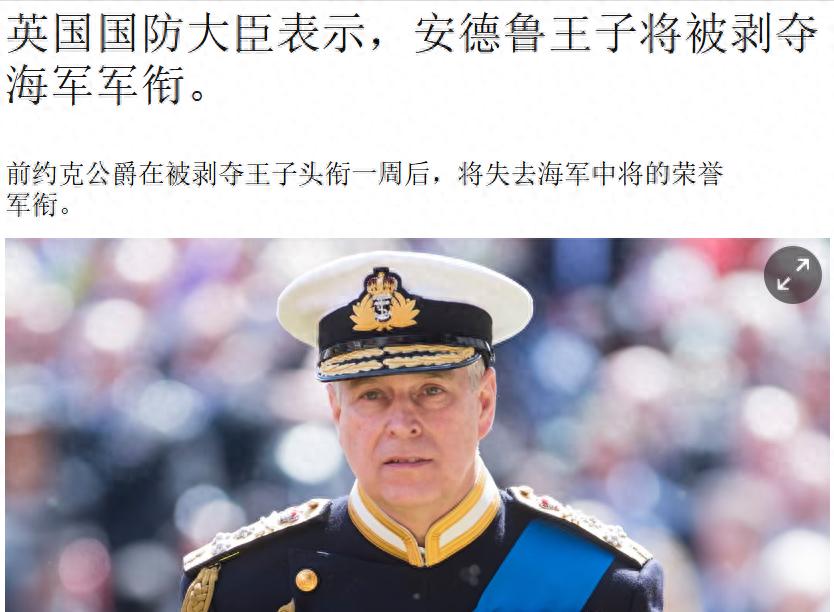 但在爱泼斯坦丑闻风波扩大后,英女王在任时安德鲁被要求放弃了那一堆的海军荣誉军衔。