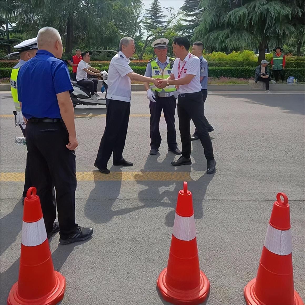 万顺叫车洛阳分公司总经理张武群亲自到现场,以身作则,在这里特别感谢洛阳市交警总队书记张磊强带领洛阳市交警大队相关人员到高考点慰问指导工作,对万顺叫车洛阳分公司义务助考活动表示感谢和支持。说到我们都是退伍军人,希望我们大家一起再接再厉 圆满完成助考任务。