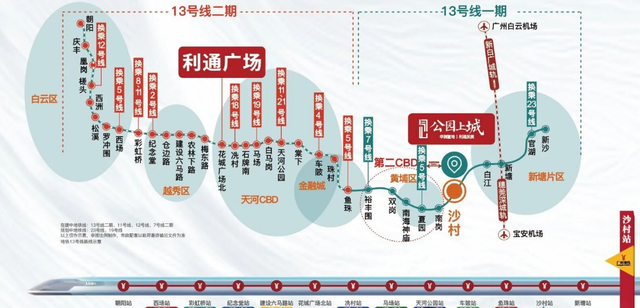 对于现代家庭而言,居所的选择首先是对未来生活动线的选择。“公园上城”的基底,建立在一个高度成熟的交通网络上。项目距在建的广州地铁13号线二期沙村站仅约400米,这条贯穿黄埔、天河、越秀等五大主城区的“黄金动脉”,意味着未来业主能实现快速通勤,高效连接珠江新城等城市核心。此外,周边高速路网与临近的新塘南站TOD枢纽,更将生活半径扩展至整个大湾区,出则畅达,归则便捷。