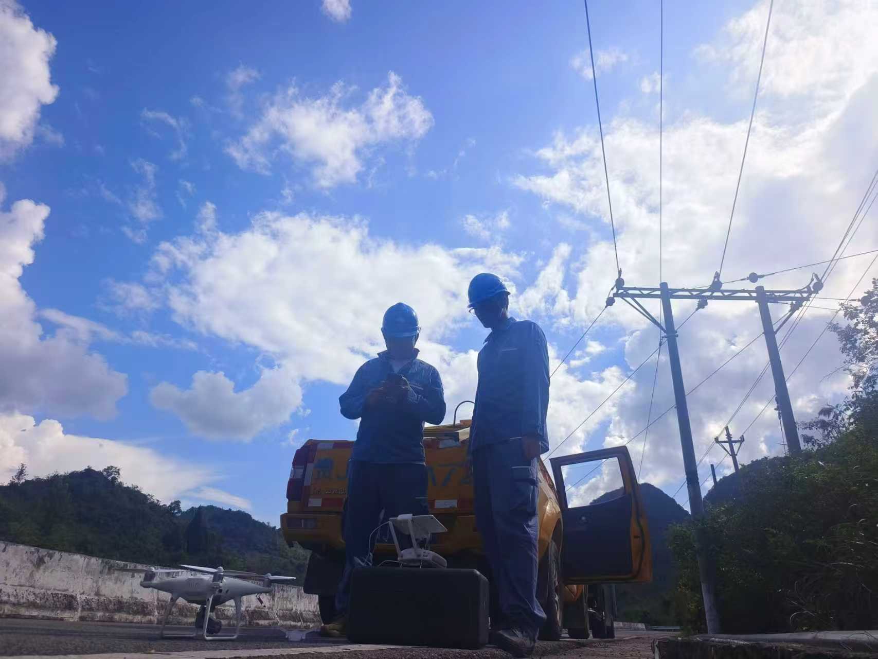 南方电网贵州都匀平塘供电局工作人员开展设备巡视,为云阳关收费站最终通电扫除缺陷及隐患障碍(陈家茂 摄)