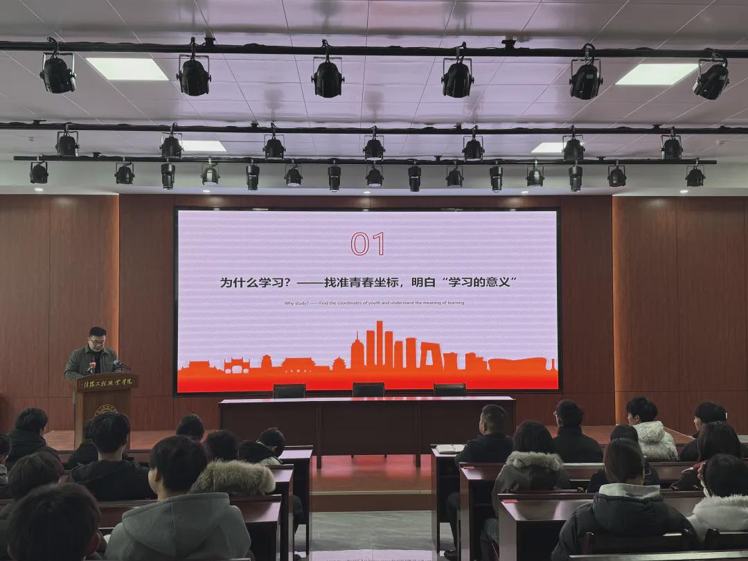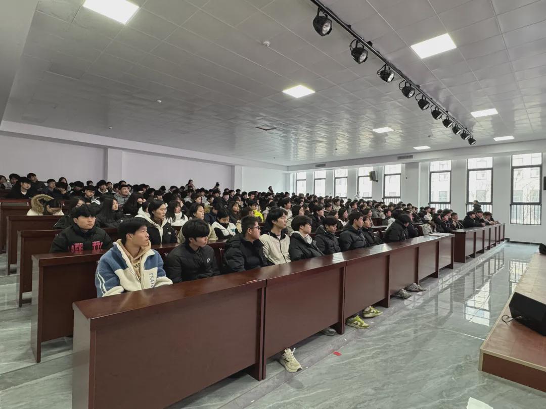2025年12月26日下午,信阳工程职业学院副校长徐俊杰以《逐梦青春 笃行致远》为题,为五年制高职学院260名学子讲授了一堂既有思想深度、又饱含育人温情的专题思政课。
