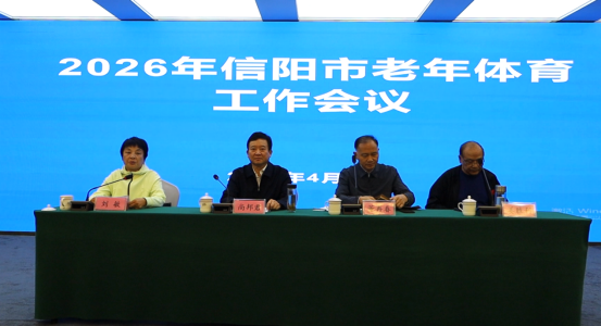 4月21日上午,2026年信阳市老年体育工作会议召开。信阳市老年人文化体育协会主席尚邦君,信阳市教育体育局党组成员、副局长董再春,以及信阳市老年人文化体育协会副主席姜胜利、廖香雨、罗德华、刘俊辉,秘书长黄婉出席会议。
