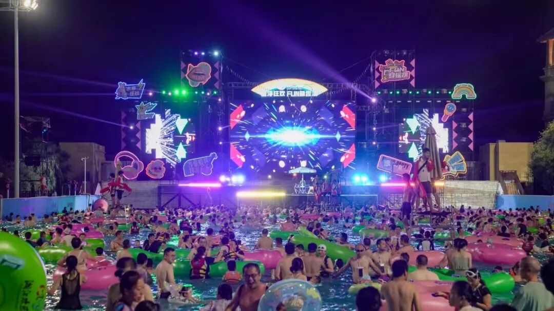 转战欢乐水寨,东南亚风情舞者身着金箔纱丽起舞,热浪乐队的LIVE点燃全场,“趣味泼水大战”更是把清凉拉满——水花飞溅间,陌生游客变“战友”,手机裹着防水袋也挡不住笑容。
