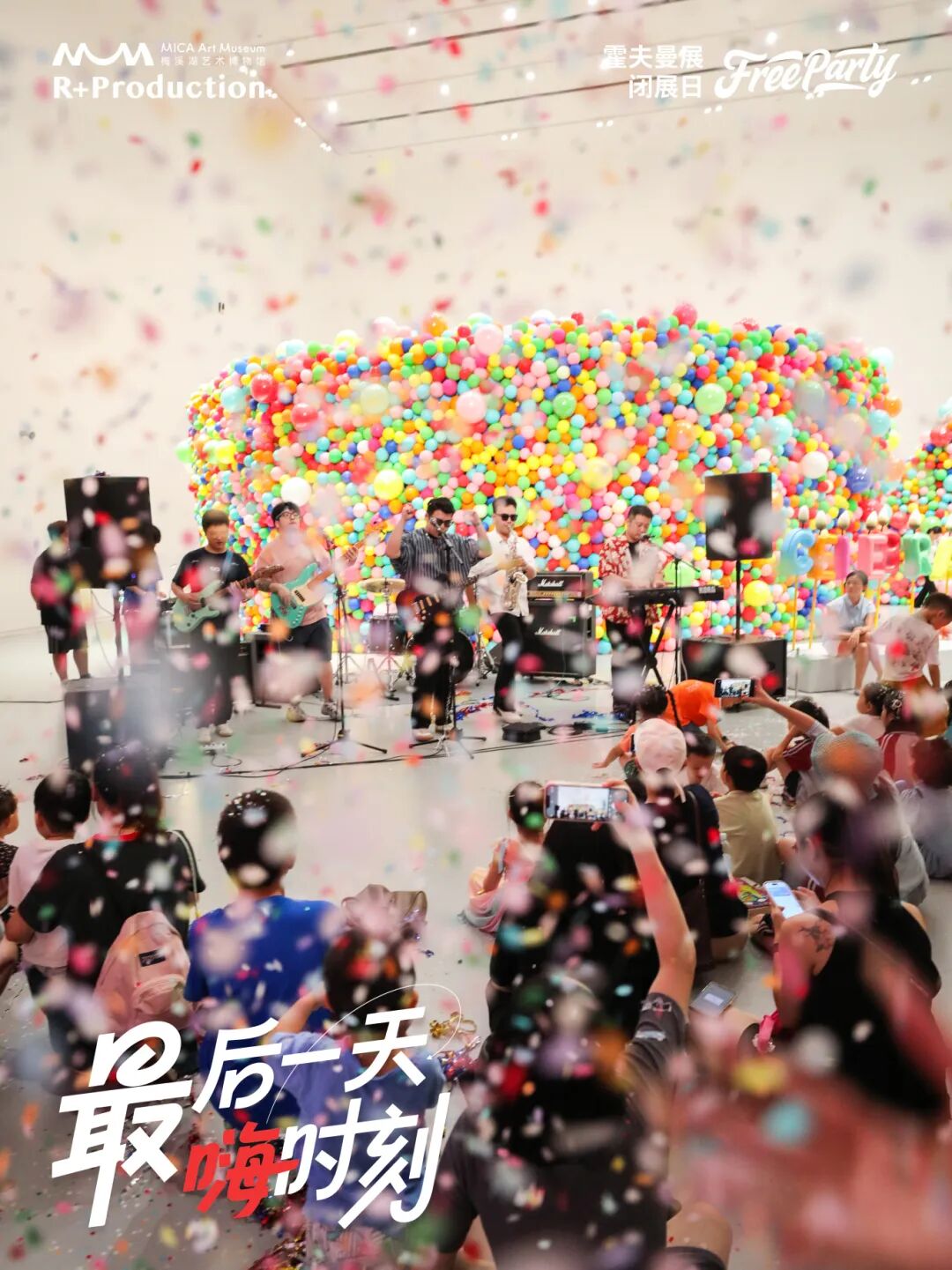 8月31日,梅溪湖艺术博物馆霍夫曼大展《即刻欢聚》迎来最后一天,闭展不以告别收尾,而是以一场充满欢笑与惊喜的派对拉开序幕。在乐队与舞者的带动下,大家一起舞动,节奏与律动瞬间点燃现场。大朋友和小朋友们全场齐扎破巨型气球装置,在灯光、音乐与彩带交织中迎来最炫目的瞬间。