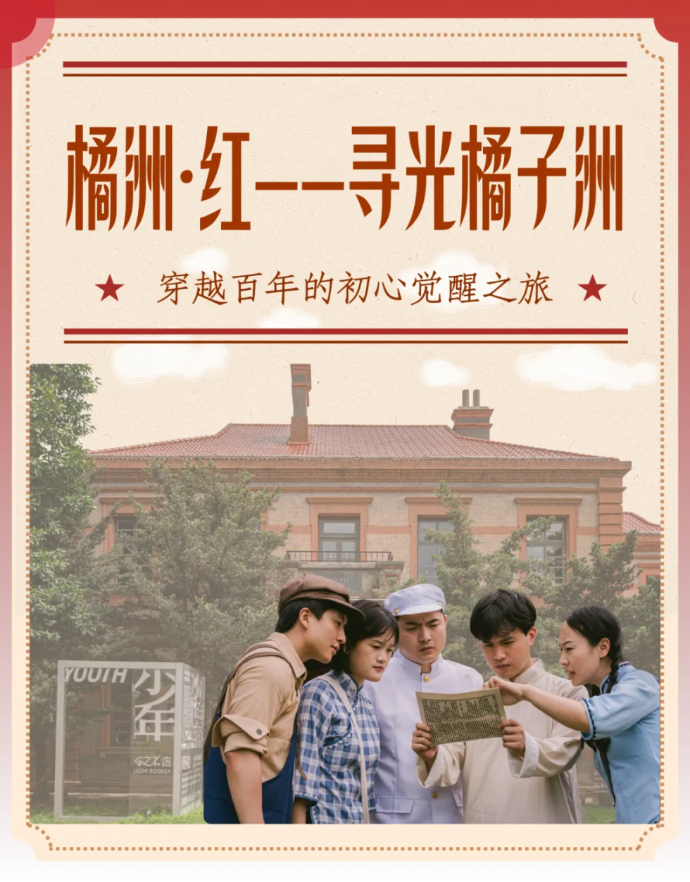 当游客走进橘子洲时,“橘洲・红——寻光橘子洲”主题党课直接打破了“坐着听党史”的刻板印象,把百年前的长沙变成了“实景片场”。海关公廨的厚重砖墙、乐之书店的油墨香气、唐生智公馆的木质楼梯,这些曾只存在于历史课本里的地标,成了穿越时空的“任意门”。