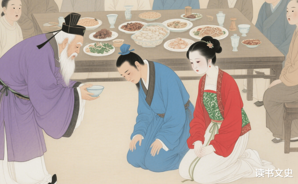说着就要给晚辈磕头。满堂宾客都看傻了,小两口扑通跪下认错。