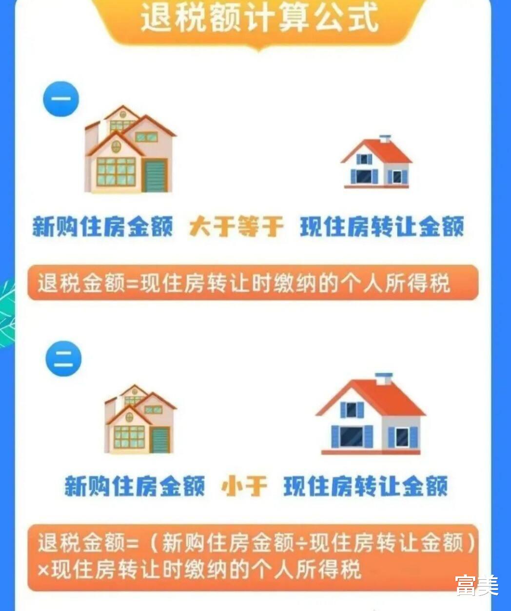 2.退税金额如何计算?新购住房金额≥现住房转让金额的,全额退还个税;新购住房金额<现住房转让金额的,按比例退还个税。