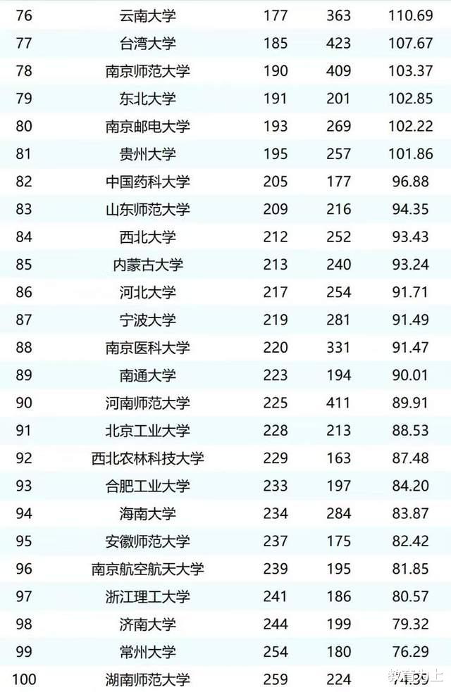 此外,居榜单前100强的高校还有江苏大学、广东工业大学、浙江工业大学、山东师范大学、宁波大学、南通大学、河南师范大学等,是考生报考性价比较高的一批大学。