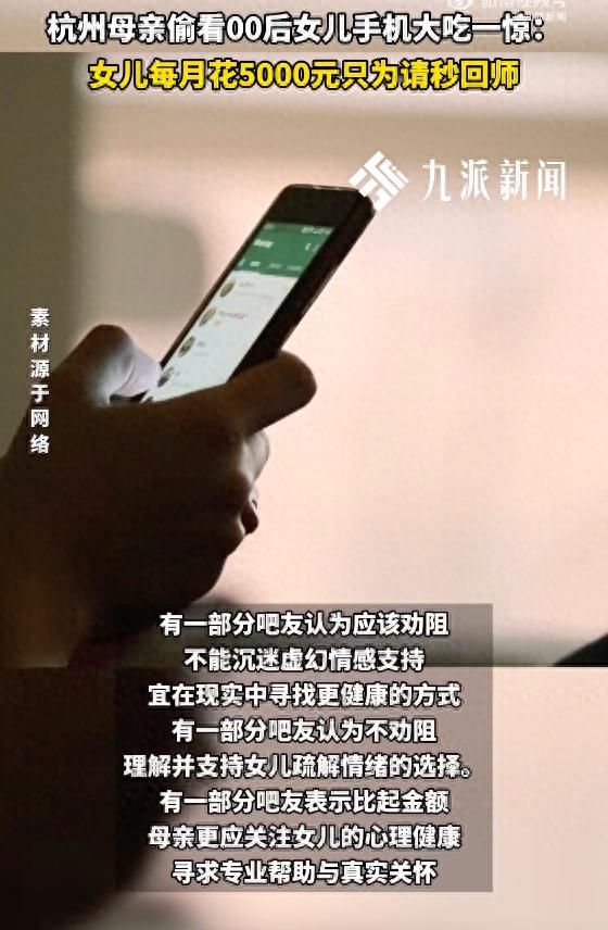 杭州陈阿姨家00年的女儿月薪9000元,吃住在家却毫无存款,出于好奇,陈阿姨偷看女儿手机发现,女儿每月花费5000元购买了一项名为“秒回师”的服务——由真人在指定时段内提供即时消息、电话和视频回应,双方素未谋面,交流内容也仅限于工作、友情与家庭烦恼。