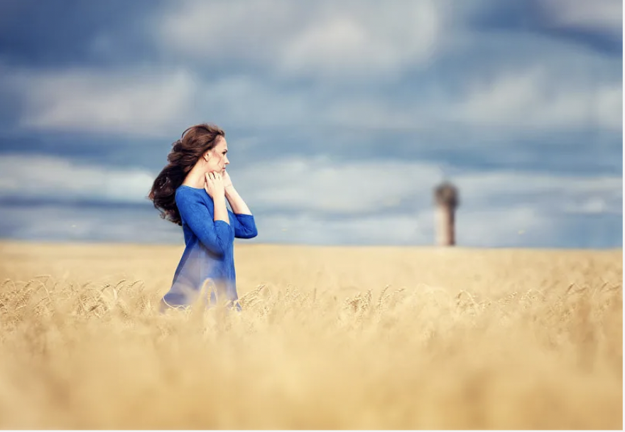 她的衣裙沾了些泥土,头发也有些凌乱,似乎是因为太仓促而摔了一跤。