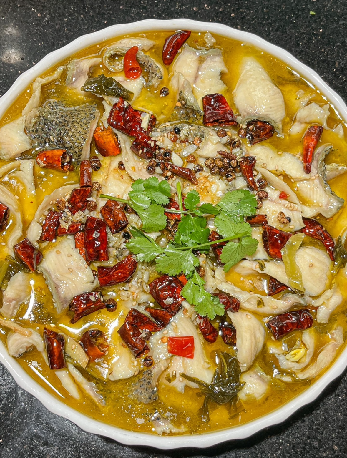 鱼片要“泡温泉”而不是“煮开水”。我关火,把鱼片一片片滑进去,像给它们发救生衣,再开中小火,10秒后轻推,鱼片卷成俏皮的浪花,粉白粉白,刚好熟透。老妈在旁边递葱花,我潇洒一撒,绿星星落进金汤,“滋啦”一声,油光蹦迪,酸菜鱼正式C位出道!
