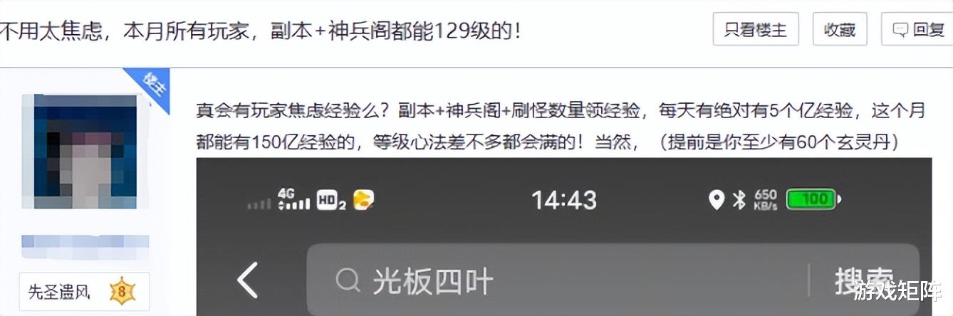 有人测算过,在玄灵丹充足的前提下,每天把副本和神兵阁刷满,稳定获得五亿经验,一个月就是150亿。怕“打架被落下太远”的焦虑,消失得很干脆,上号不用多久,就能和野外抢经验点的玩家过上招了。