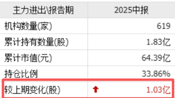 机构动态:二季度持股机构数619家,较一季度增加578家,合计持股1.83亿股,加仓1.03亿股。