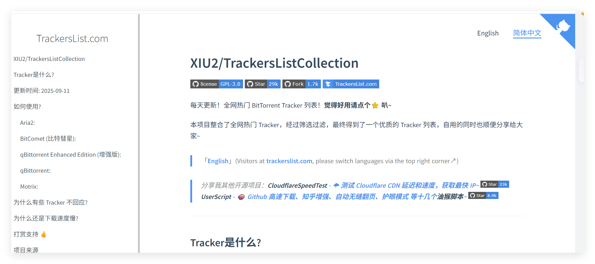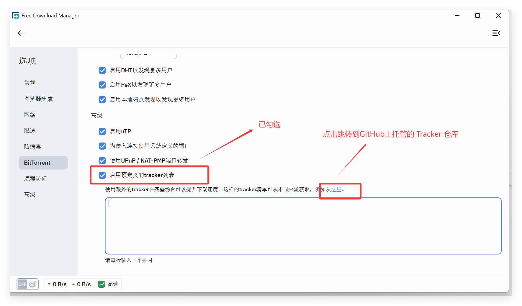 当然,若不具备打开 GitHub 的条件,可使用 trackerlist: