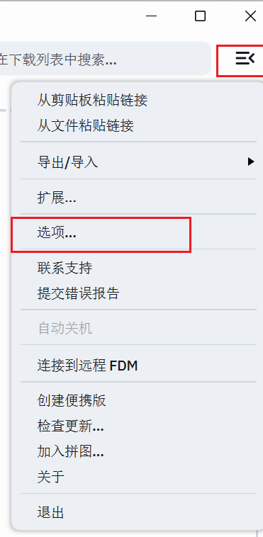 点击下图所示处,在弹出的菜单中选择“选项”: