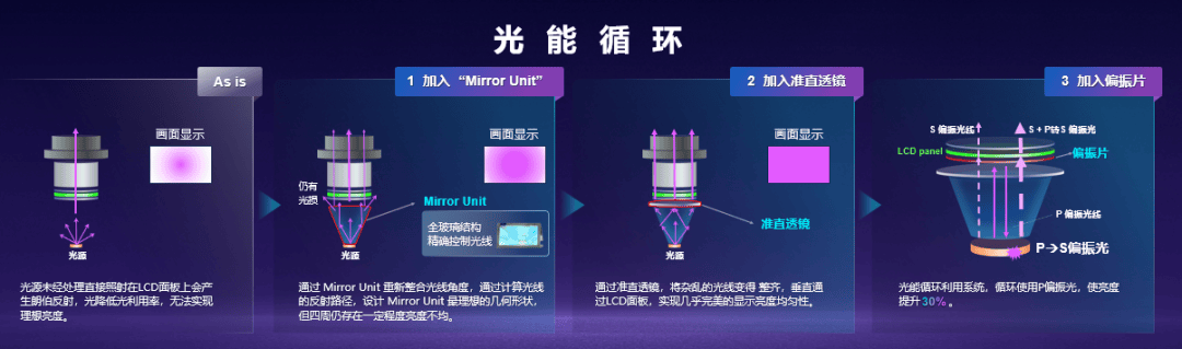 支撑这一创新的是爱普生独有的 “光能循环” 技术,精工爱普生公司投影产品整体设计研发总经理南云俊彦将其解析为 LCD 显示痛点的三步解法:第一步加入全玻璃 “Mirror Unit”,规整光线角度;第二步用准直透镜让光线 “垂直列队” 通过 LCD 面板,解决亮度不均;第三步加入偏振片构建 “光能循环系统”,将浪费的 P 偏振光转化为可用光,直接实现 30% 亮度提升。这种硬件结构优化,比单纯增加光源功率更具技术含金量。
