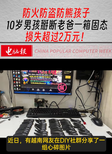 这不《电脑报》援引越南媒体的消息,有越南网友发帖称自己刚到货的一箱三星M.2 SSD硬盘,一不留神被自己10岁的儿子开封,并且一个个的都给掰弯掰断了。