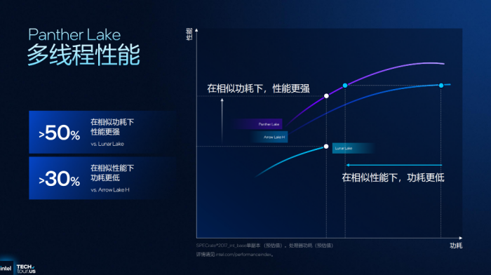 2026年CES展会上,全新英特尔第三代酷睿 Ultra处理器Panther Lake以颠覆性技术突破引发行业震动。基于全球首批Intel 18A制程工艺打造,该芯片集成RibbonFET全环绕栅极晶体管与PowerVia背部供电技术,实现相同功耗下每瓦性能提升15%、相同性能下功耗降低25%的跨越式进步,具体有多强可以继续看看。