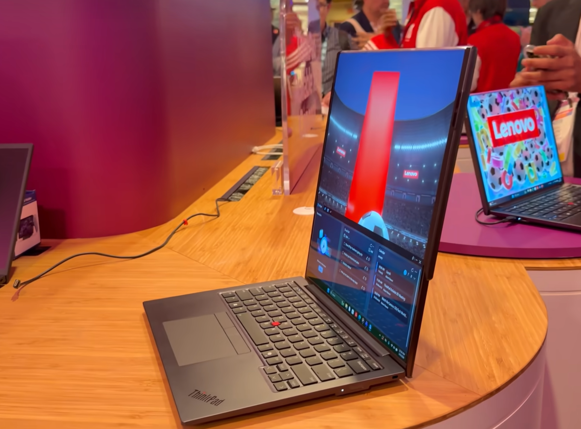 CES 2026展台上,许多笔记本大厂展示了自己的硬核技术,比如联想的卷轴屏,拯救者的卷轴屏则是游戏本,屏幕左右可展开成一款超大屏,除了卷轴屏这种秀屏幕技术的,联想还有一款很有意思的笔记本 ,双击A面会弹开,而且屏幕支持追踪人脸而随动,预计是为开会场景设计的。