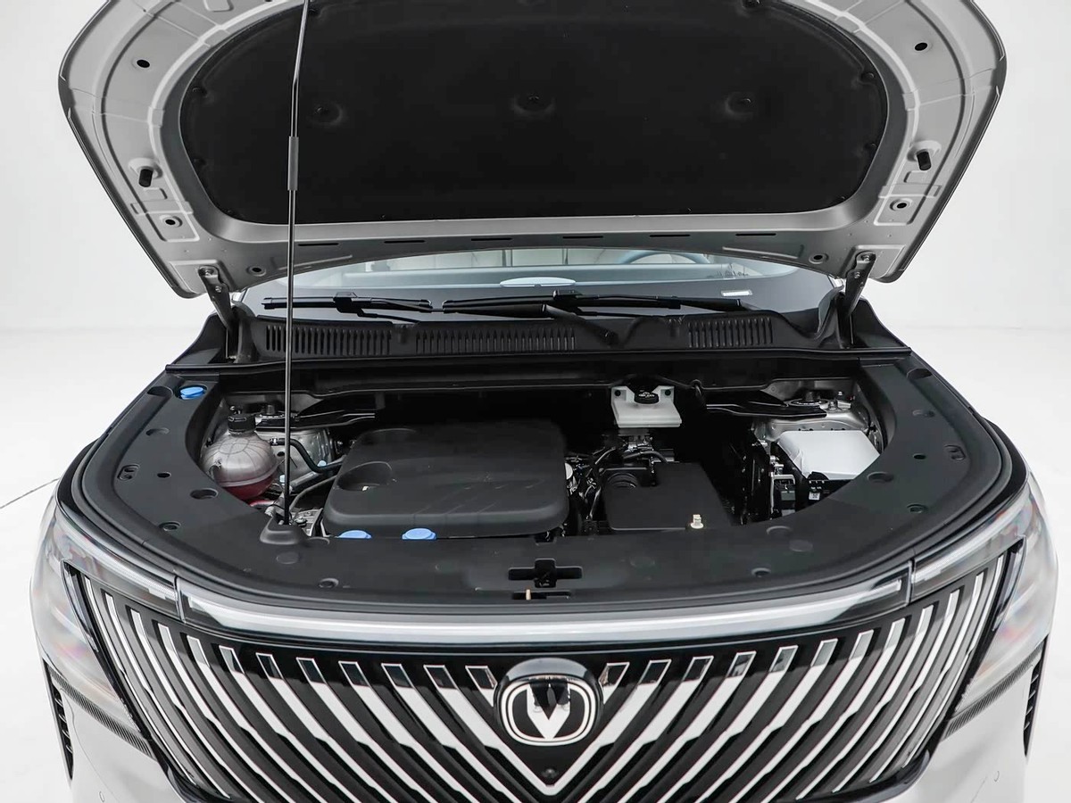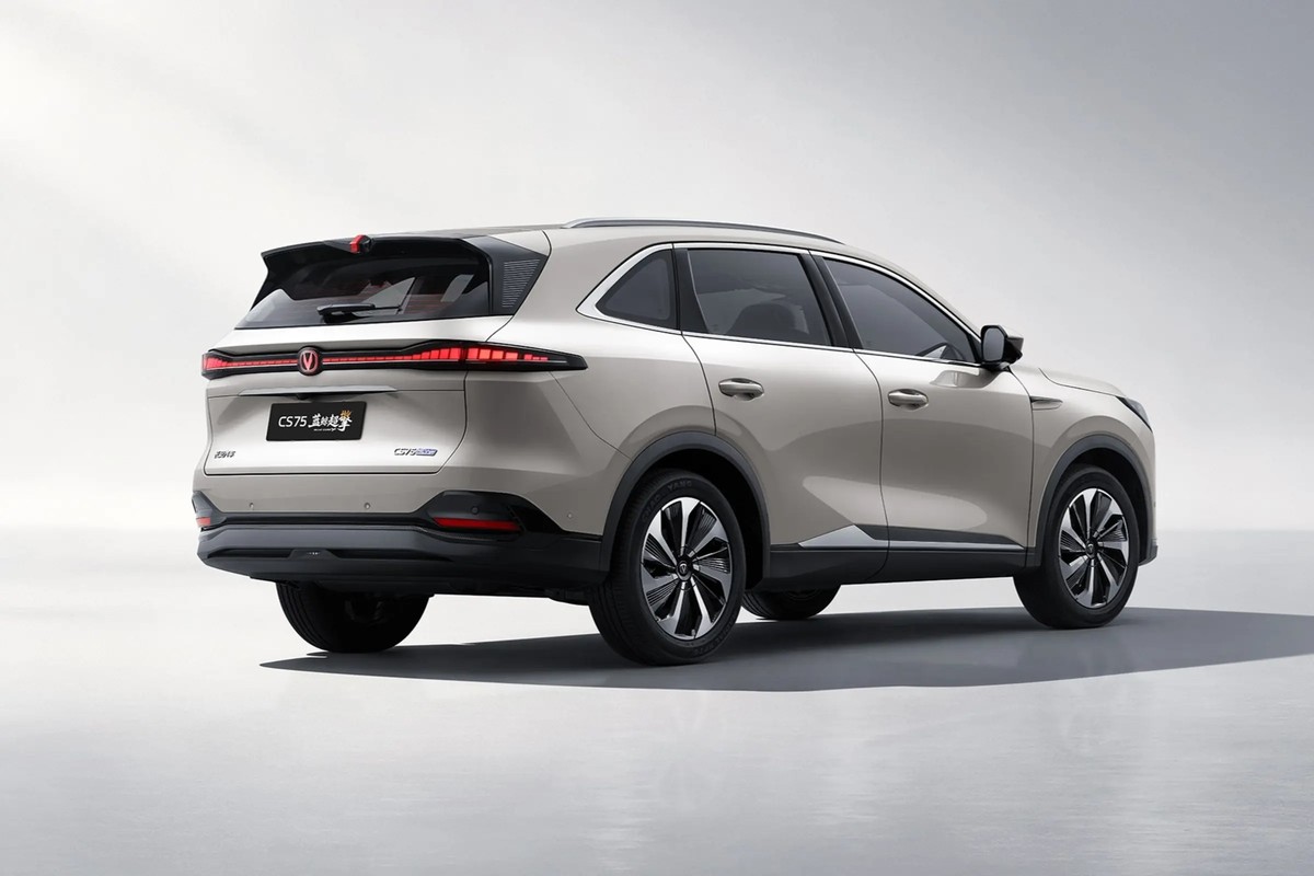 至于长安CS75 PLUS HEV,除了核心的动力系统,本质上其实还是基于第四代长安CS75 PLUS打造,但外观采用了新的设计。外观上新车中网格栅尺寸更大,内部是V型镀铬填充,搭配贯穿式灯带,视觉冲击效果很强。车身侧面则是有着俯冲姿态,车门比较平整,同时四代车型的隐藏式门把手被取消,采用了机械门把手。尾部则配备了贯穿灯带、扰流板等设计,更加年轻、运动。
