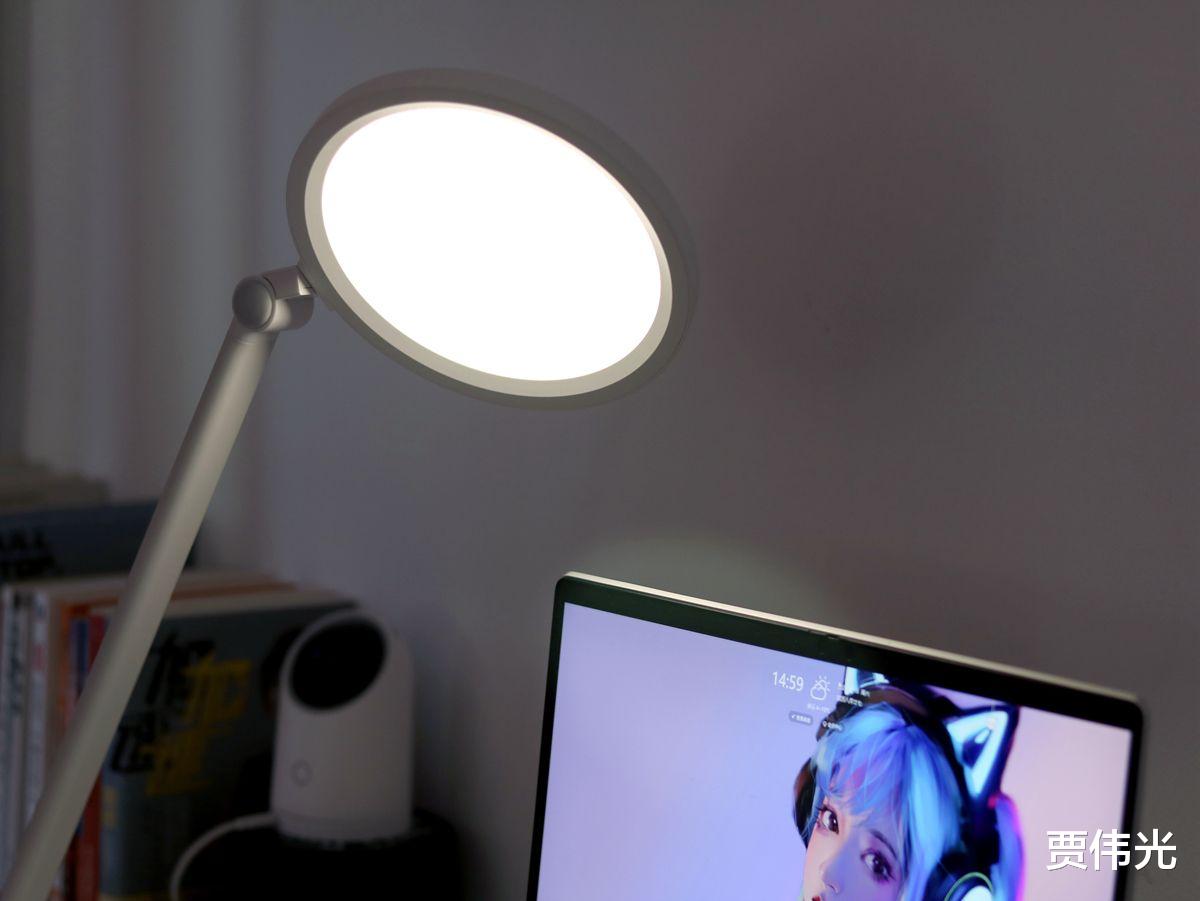 一般的台灯,光线较硬,在这种台灯下长时间学习,更容易造成视觉疲劳,书客SKY护眼台灯的灯头则采用了高密度导光板+扩散膜组合,消除光源颗粒感,用很直观的感受就是光线不容易刺眼,将这款台灯的亮度调到50%,即使盯着台灯看,也不会像看普通台灯那样刺眼,会明显感觉光线更加柔和。