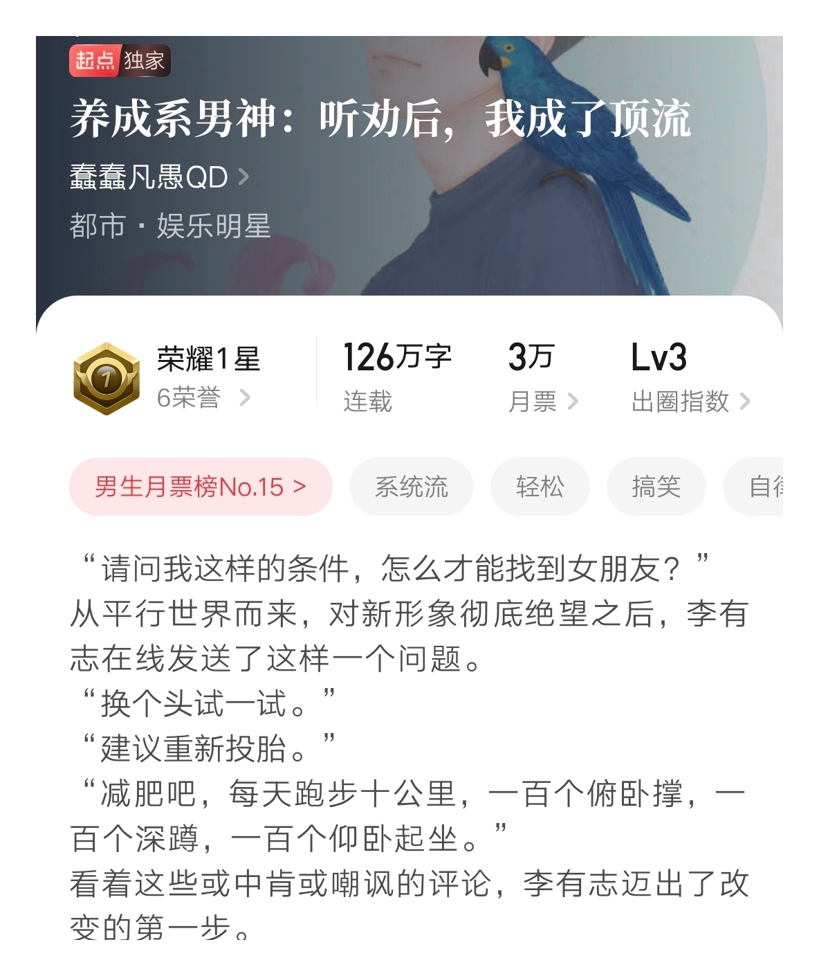 首先,让我们来看看这部小说。《养成系男神:听劝后,我成了顶流》一听名字就知道,这是一部让你从头到尾都能感受到满满“养成”气息的故事。主角突然觉醒了一个奇妙的系统,这个系统让他能够采纳他人的意见,然后不断持续锻炼、改进,改变自己形象丑的事实。