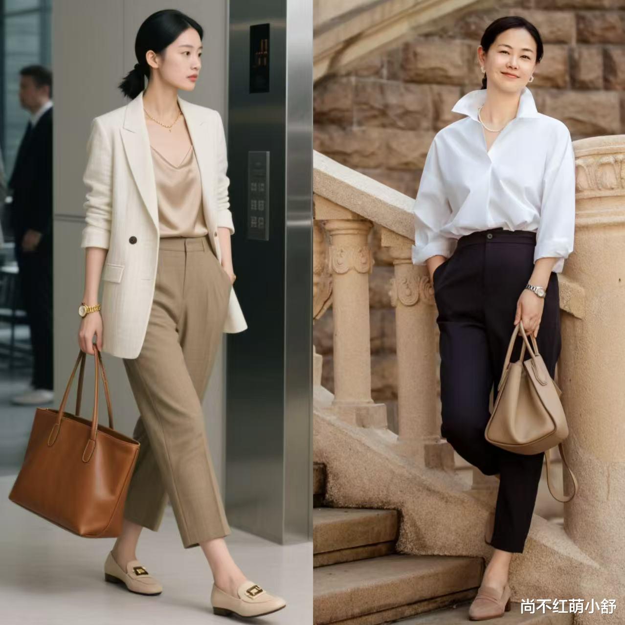 秋冬“上宽下窄”的神裤非“锥形西装裤”莫属了——腰臀位置比直筒裤松5%,但绝不垮塌。比如时尚博主这条高腰锥形西装裤,搭配吊带,外套选择西装,整体采用同色系搭配,梨形姐妹照穿高级又显瘦。