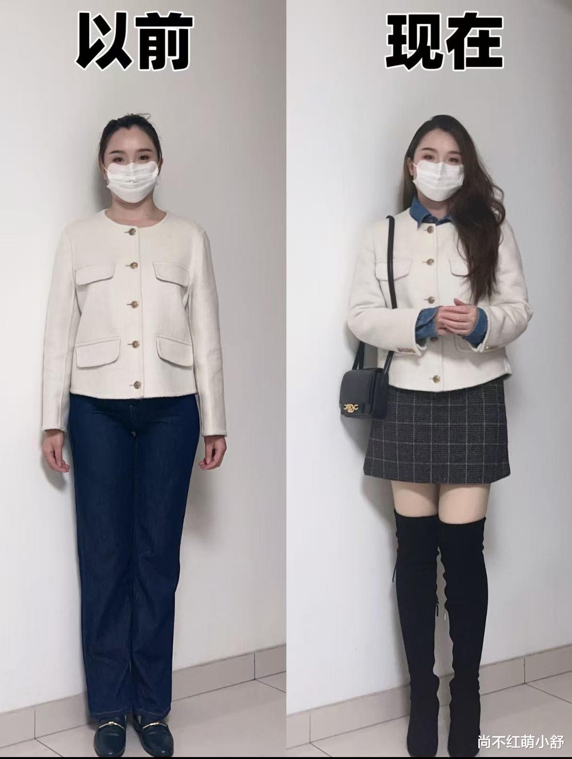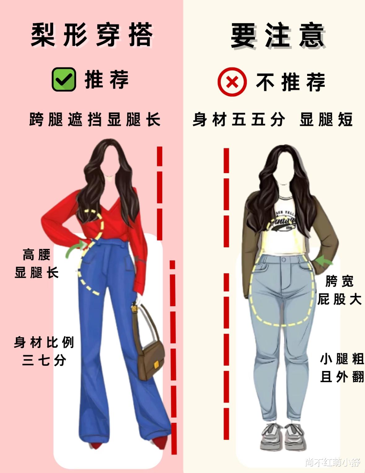 更扎心的是秋冬面料:硬挺牛仔卡胯、软塌针织贴腿、加绒款直接膨胀成“米其林轮胎”,显矮又显壮。