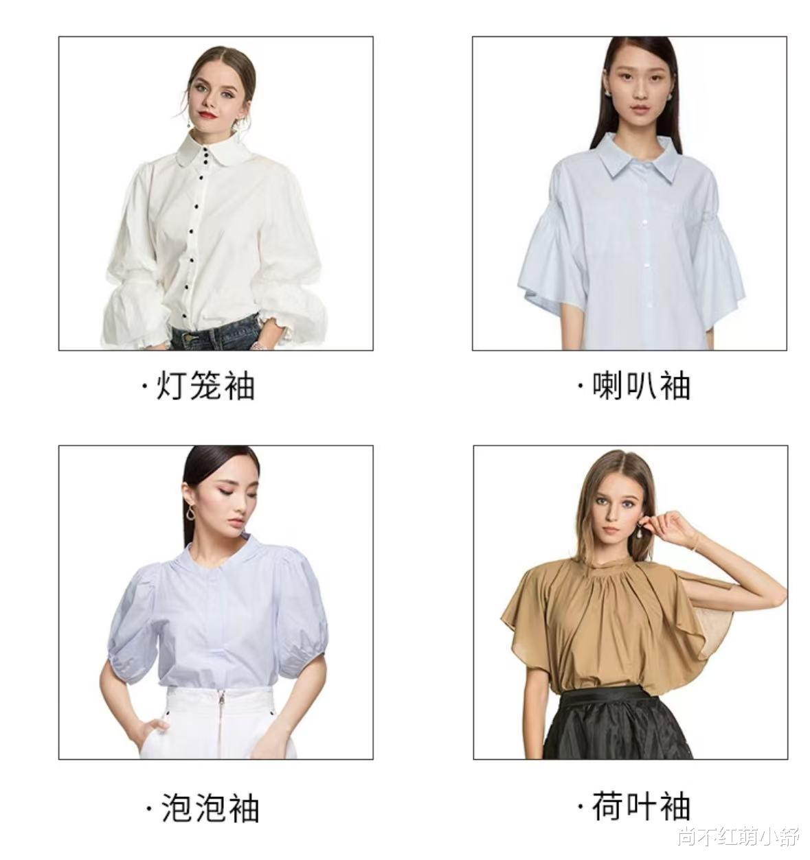 1)泡泡袖/羊腿袖上衣:蓬松的袖型能有效增加肩宽,平衡臀部的宽度,让头肩比更完美。同时能紧紧包裹住纤细的小臂和手腕,非常显瘦。