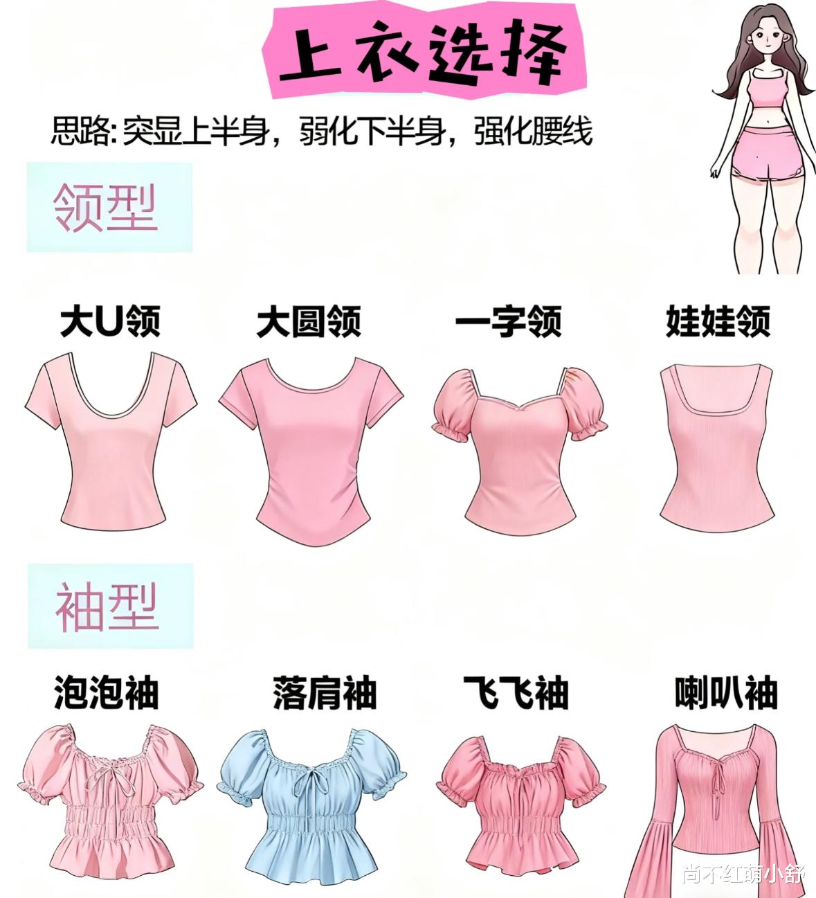 别急,90%的梨形姐妹穿错,都是因为没掌握“上宽下窄”的黄金剪裁。