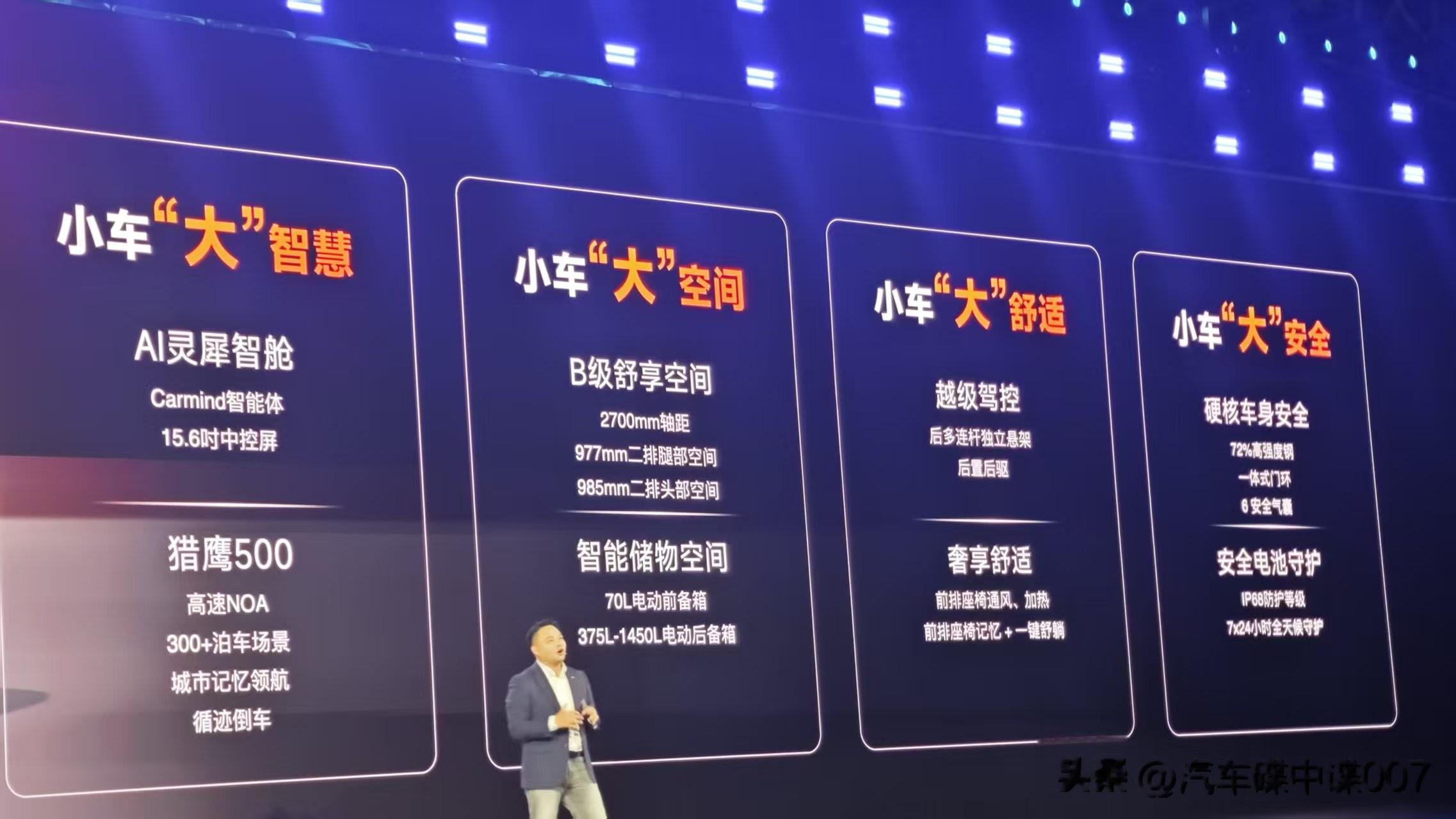 新车已于1月申报,尺寸为4195×1811×1570mm,轴距达2700mm,采用后置后驱设计,电机功率90kw,续航为300/400km,前麦弗逊、后多连杆结构。并且配备了70L前备箱、8个气囊,并搭载猎鹰500智驾,支持高速noa和城市记忆领航!